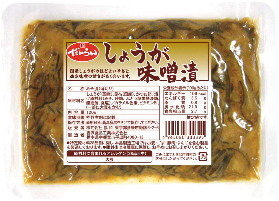 規 格 : 120g 賞味期間: 90日 国産生姜・昆布・かつお節使用。生姜のほどよい辛さと、西京味噌の甘さがよく合います。
