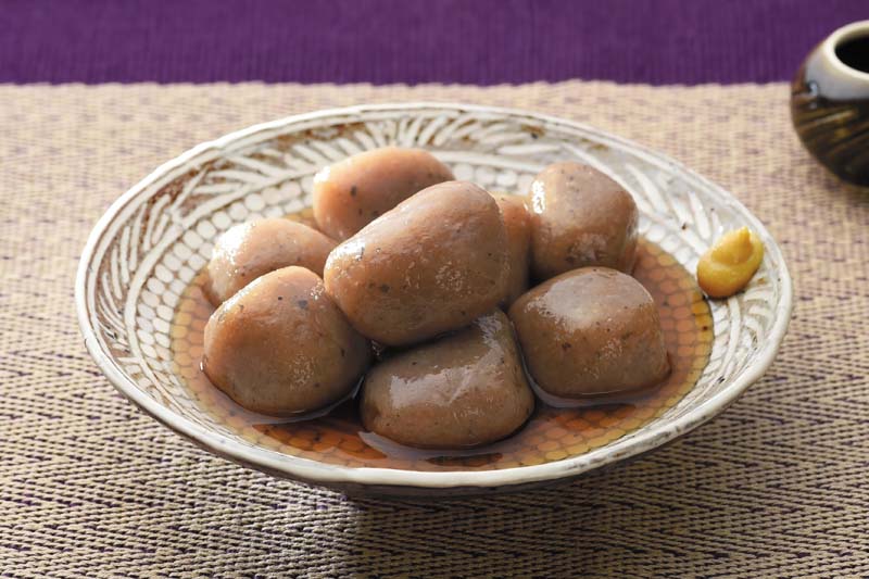 規 格 : 12個 賞味期間: 120日 山形県産こんにゃく芋使用。かつお風味で中までしっかりと味のしみ込んだ山形名物です。お好みで温めてもおいしくお召し上がりいただけます。